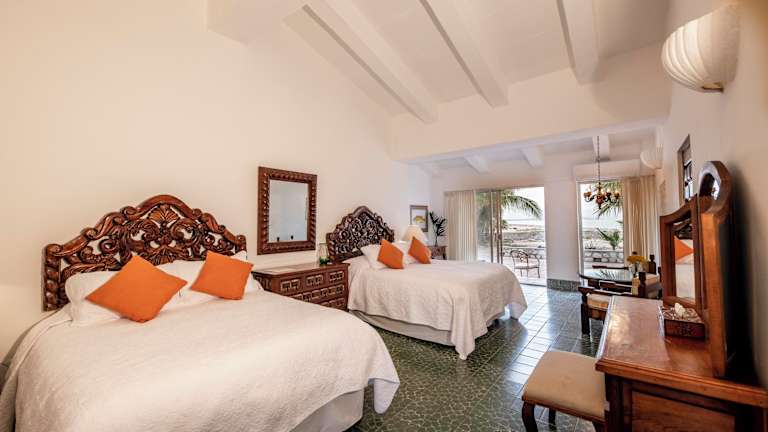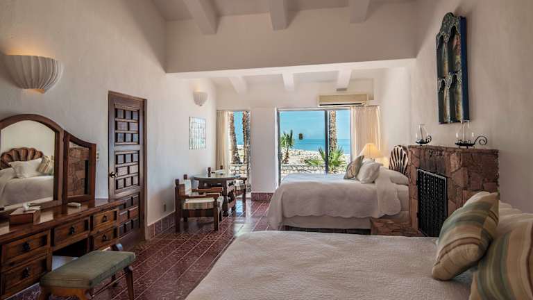 Im Rancho Las Cruces finden Sie eine Auswahl an stilvoll eingerichteten Zimmern, Suiten und Villen, die alle mit einem eigenen Balkon und einem atemberaubenden Blick auf das Meer ausgestattet sind. Die Unterkünfte sind im traditionellen mexikanischen Kolonialstil dekoriert und bieten modernen Komfort wie kostenloses WLAN und Klimaanlage. Einige Zimmer verfügen sogar über einen gemütlichen offenen Kamin, während die Villa mit einem eigenen Pool und einer voll ausgestatteten Küche ausgestattet ist.