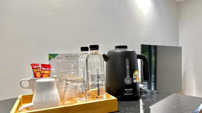 Jedes Zimmer im Rangsit Residence & Hotel ist mit einem Balkon ausgestattet. Zur Einrichtung gehören zudem Klimaanlage und ein eigenes Badezimmer. Die Zimmer werden täglich gereinigt und können je nach Wunsch der Gäste auch nicht gereinigt werden.