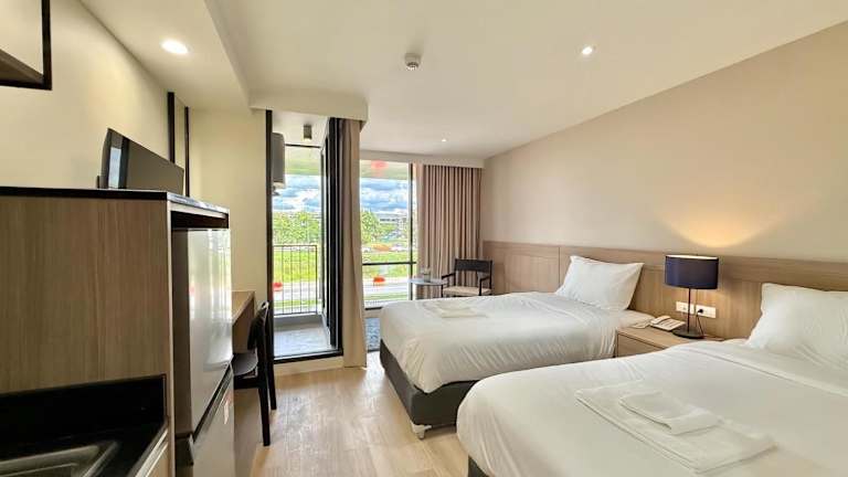 Rangsit Residence & Hotel bietet ausgewogene Übernachtungsmöglichkeiten in einem ruhigen Gartenbereich. Zur Verfügung stehen kostenlose Parkplätze und eine Terrasse für die Gäste. Die Unterkunft legt Wert auf Hygiene und Sicherheit, mit professioneller Reinigung und desinfizierten Gemeinschaftsbereichen.