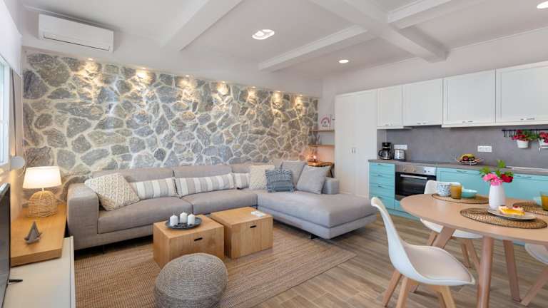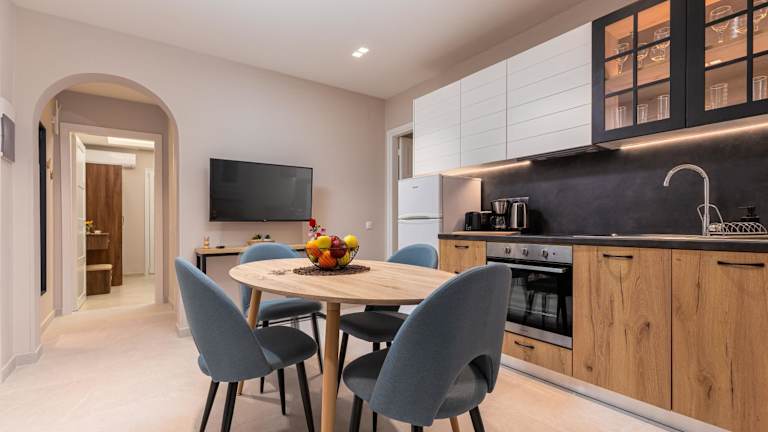 Da die Apartments über eine Küche verfügen, haben die Gäste die Möglichkeit, ihre eigenen Mahlzeiten zuzubereiten. In der Umgebung gibt es jedoch auch verschiedene Restaurants und Tavernen, in denen Sie lokale Spezialitäten und internationale Küche genießen können. Von traditionellen griechischen Gerichten bis hin zu frischen Meeresfrüchten gibt es eine große Auswahl an kulinarischen Erlebnissen in der Nähe der Apartments.