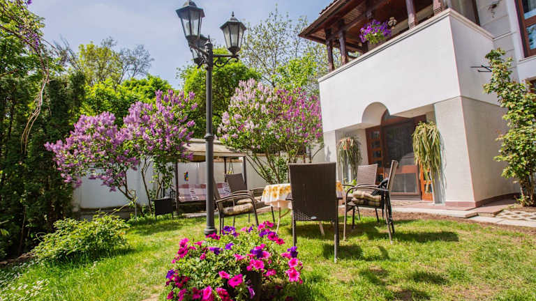 Die Rapsodia Pension in Suceava ist eine charmante Unterkunft, die nur 300 m von der Alten Zitadelle entfernt liegt. Hier erwartet Sie ein Landhausstil-Ambiente mit kostenfreiem WLAN in den Zimmern und einem wunderschönen parkähnlichen Garten mit Sommerterrasse. Die Zimmer sind gemütlich eingerichtet und verfügen über ein eigenes Bad, einen TV, einen Kühlschrank und Holzböden. Einige der geräumigen Unterkünfte bieten zudem eine Whirlpool-Badewanne oder einen Balkon. Im Gemeinschaftsbereich steht Ihnen eine voll ausgestattete Küche zur Verfügung und auf Wunsch kann auch Catering organisiert werden. Das Frühstück wird in einem Panoramaraum mit deckenhohen Fenstern serviert, von dem aus Sie einen herrlichen Blick auf den Garten genießen können. Die zentrale Lage ermöglicht es Ihnen, den Busbahnhof in nur 300 m und den Bahnhof in 4,5 km zu erreichen. Das nächste Restaurant ist nur 5 Gehminuten von der Pension entfernt.