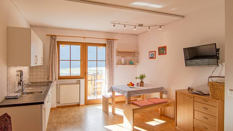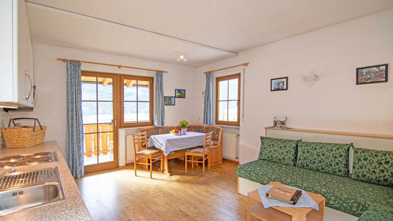 Auf dem Raslgut stehen 3 Ferienwohnungen zur Verfügung, die Platz für die ganze Familie bieten und mit Allem ausgestattet sind was man im Urlaub braucht. Wenn nötig steht den Gästen auch ein Babybett zur Verfügung. Zum Frühstück am Balkon der Wohnung können die Urlauber den Brötchenservice des Hofes in Anspruch nehmen. Je nach Jahreszeit bieten die Gastgeber frisches Obst an und auch das Kräuterbeet steht den Gästen zur Verfügung.