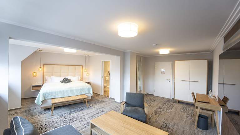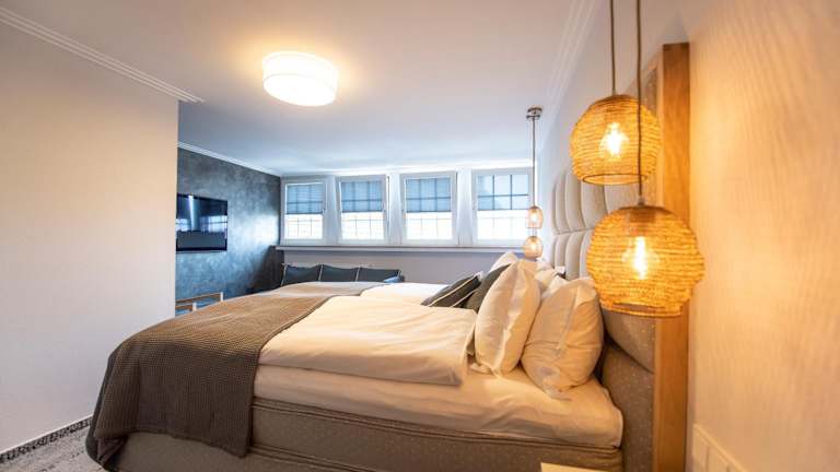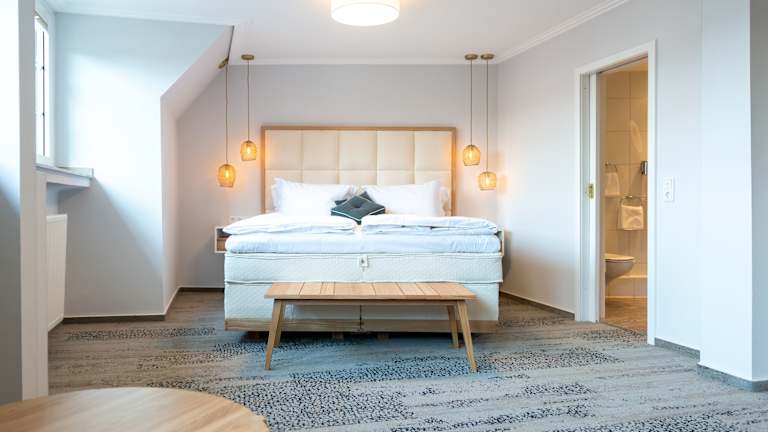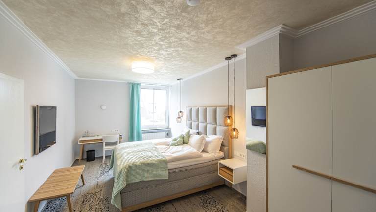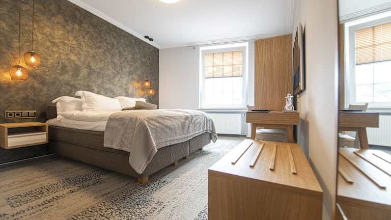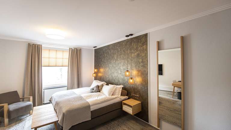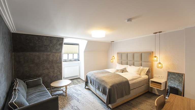Die Zimmer im Ratshotel sind modern und hell gestaltet und bieten Ihnen einen komfortablen Rückzugsort während Ihres Aufenthalts. Jedes Zimmer verfügt über einen Flachbild-TV und einen gemütlichen Sitzbereich. Im Badezimmer finden Sie standardmäßig Pflegeprodukte und einen Haartrockner vor.