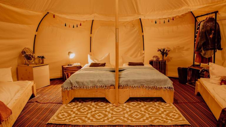 Das raus und gut Glamping am Gräbendorfer See in Drebkau bietet eine einzigartige Unterkunftsmöglichkeit für Reisende, die die Natur genießen möchten. Mit einem eigenen Strandbereich, kostenfreiem WLAN und einer Gemeinschaftsküche bietet das Hotel alle Annehmlichkeiten für einen entspannten Aufenthalt. Die Umgebung eignet sich ideal zum Radfahren und die Unterkunft bietet auch einen Fahrradverleih. Entdecken Sie die Schönheit der Region und genießen Sie gleichzeitig eine komfortable Unterkunft am Gräbendorfer See.