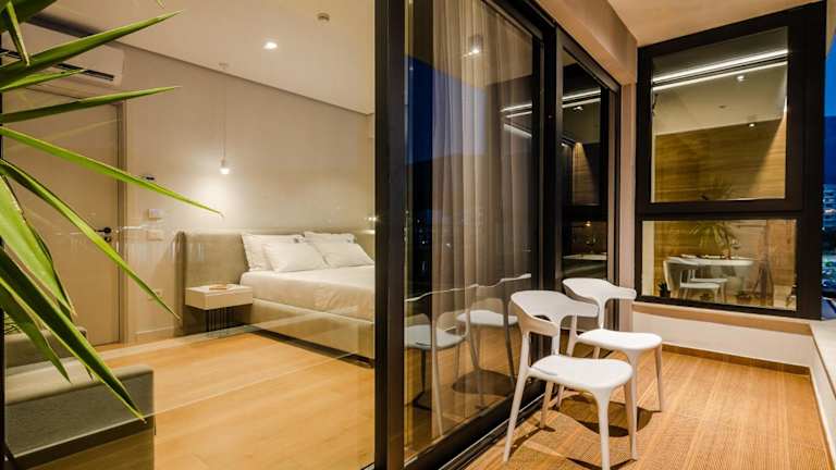 Die klimatisierten Zimmer der Unterkunft sind mit einem Schreibtisch, einem Wasserkocher, einem Kühlschrank, einem Safe, einem Flachbild-TV, einer Terrasse und einem eigenen Badezimmer mit Dusche ausgestattet. Alle Zimmer bieten Stadtblick und verfügen über einen Balkon. Bettwäsche und Handtücher sind ebenfalls vorhanden.