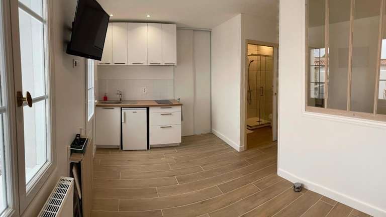 Das Réalaplage Studio de Charme sur Rivedoux befindet sich in Rivedoux-Plage, nur 600 m vom wunderschönen Strand Plage Sud entfernt. Die Lage ist ideal, um die malerische Umgebung zu erkunden und die Schönheit der Küste zu genießen. In der Nähe befinden sich auch der Bahnhof La Rochelle und L'Espace Encan. Die Gegend bietet eine Vielzahl von Aktivitäten und Sehenswürdigkeiten, darunter der Parc Expo de La Rochelle und die La Rochelle Grosse Horloge. Der Flughafen La Rochelle ist nur 6 km entfernt und bietet eine bequeme Anreisemöglichkeit.