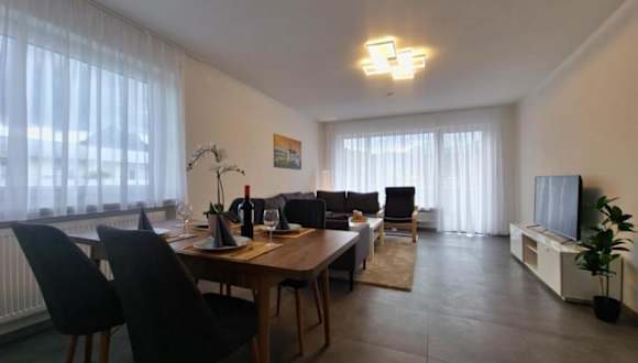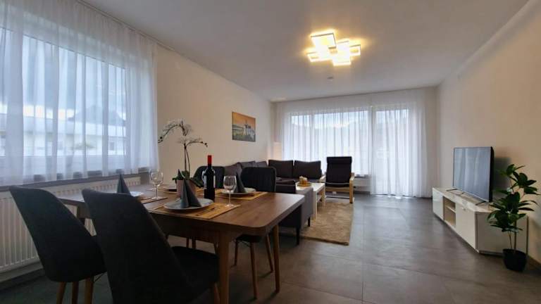 Die Ferienwohnung bietet zwei Schlafzimmer, ein Wohnzimmer und ein Badezimmer mit Dusche. Zur Ausstattung gehören ein Flachbild-TV, eine gut ausgestattete Küche mit Kühlschrank und Geschirrspüler sowie ein Balkon mit Bergblick. Handtücher und Bettwäsche sind ebenfalls verfügbar. Es sind Nichtraucherzimmer vorhanden, und Zugang erfolgt über Schlüssel.