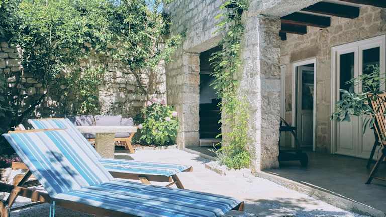 Rector's Villa - Charming Retreat in Old Town with Jacuzzi in Private Courtyard bietet Annehmlichkeiten wie kostenloses WLAN, einen Garten und eine Klimaanlage. Das Ferienhaus ist mit einem Whirlpool und einem Thermalbad ausgestattet und beinhaltet private Außenbereiche wie einen Balkon und eine Terrasse mit Gartenblick.