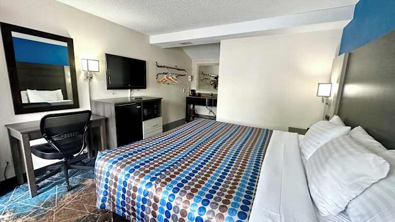 Die Zimmer im Red Carpet Inn sind mit dunklem Holz eingerichtet und verfügen über kostenfreies WLAN, Kabel-TV, Mikrowelle, Kühlschrank und Kaffeemaschine. Zudem sind ein Telefon sowie die Möglichkeit zur Klimaregulierung Bestandteil der Zimmerausstattung.