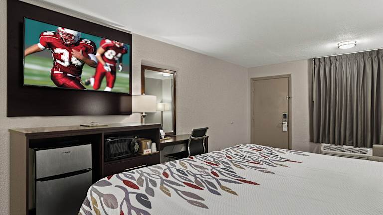 Die Zimmer im Red Roof Inn Baldwin sind gemütlich und komfortabel eingerichtet und bieten alles, was Sie für einen angenehmen Aufenthalt benötigen. Jedes Zimmer verfügt über kostenfreies WLAN, Kabel-TV und eine Kaffeemaschine für Ihren morgendlichen Koffeinkick. Die dunklen Holzmöbel verleihen den Zimmern eine warme und einladende Atmosphäre. Ein Schreibtisch und ein Bügeleisen/-brett sind ebenfalls vorhanden, um Ihren Aufenthalt so bequem wie möglich zu gestalten.