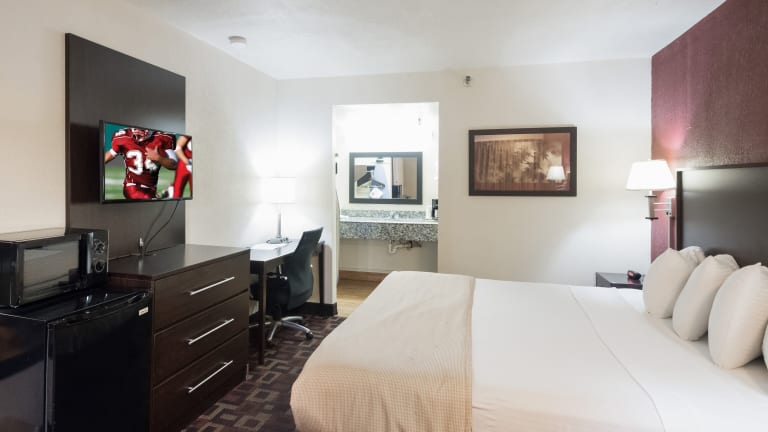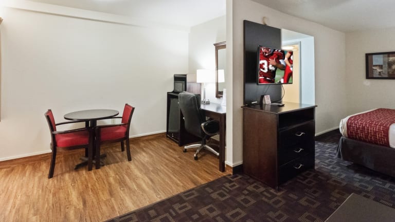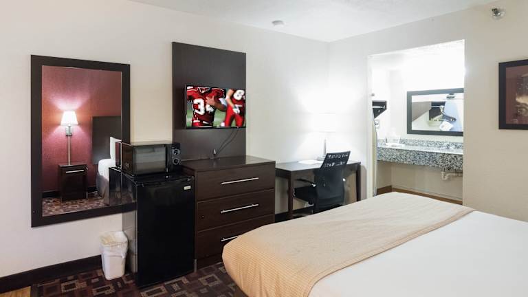 Jedes Zimmer im Red Roof Inn Oklahoma Airport I 40 W Fairgrounds bietet modernen Komfort und Annehmlichkeiten. Kostenloses WLAN und Kabel-TV stehen Ihnen zur Verfügung. Ein Schreibtisch und ein Wecker sind ebenfalls in jedem Zimmer vorhanden. Kostenlose Pflegeprodukte werden für Ihren Komfort bereitgestellt.