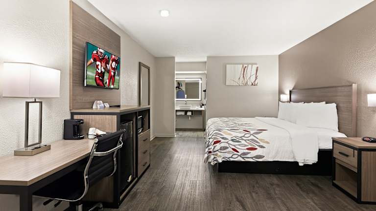 Die Zimmer im Red Roof Inn & Suites Monroe, NC bieten Ihnen Komfort und Bequemlichkeit während Ihres Aufenthalts. Jedes Zimmer verfügt über eine Mikrowelle und einen kleinen Kühlschrank, so dass Sie Ihre eigenen Mahlzeiten zubereiten können. Außerdem sind Kabel-TV und ein eigenes Bad vorhanden. Kostenfreies WLAN ist ebenfalls verfügbar.
