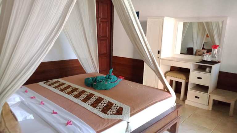 Das Reef Seen Divers' Resort befindet sich in Pemuteran, nur 10 Meter von Pemuteran Beach entfernt. Die Umgebung bietet Zugang zu verschiedenen Freizeitmöglichkeiten und Sehenswürdigkeiten, darunter Pulaki Temple (2,4 km entfernt) und Krisna Funtasticland (42 km entfernt). Die Insel Menjangan liegt 44 km von der Unterkunft entfernt. Der nächstgelegene Flughafen ist der Flughafen Banyuwangi International, der sich 60 km entfernt befindet.