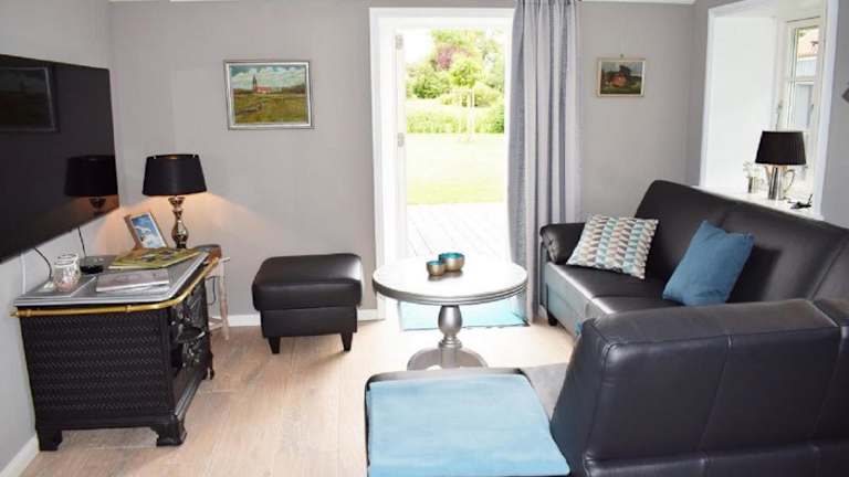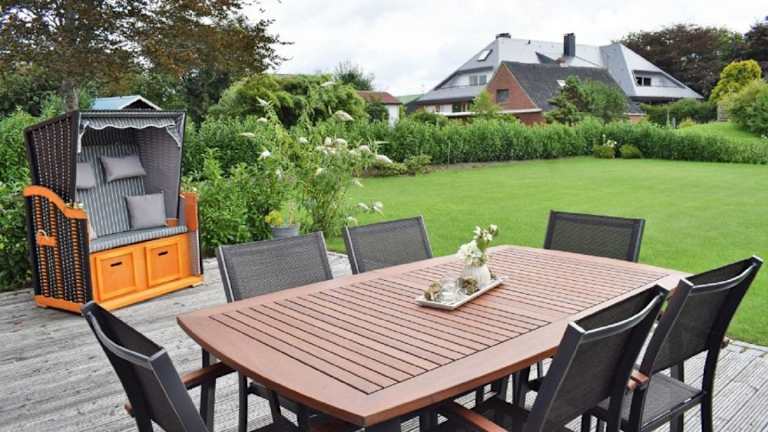 Haus Frieda / Aventoft ist eine Ferienunterkunft mit einer Terrasse, die Gästen eine entspannte Atmosphäre und moderne Annehmlichkeiten bietet, um die Freizeit zu genießen.