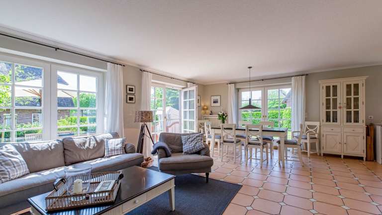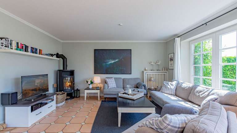 Das Ferienhaus verfügt über drei Schlafzimmer und eine voll ausgestattete Küche, die mit einem Kühlschrank und einem Geschirrspüler ausgestattet ist. Der Wohnbereich umfasst zwei Badezimmer, die mit einer Dusche, einem Haartrockner sowie einer Waschmaschine eingerichtet sind. Handtücher und Bettwäsche werden bereitgestellt.
