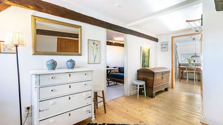 Die Ferienwohnung ist mit zwei Schlafzimmern, einem Badezimmer, Bettwäsche, Handtüchern sowie einem TV mit Satellitenkanälen ausgestattet. Zudem ist eine voll ausgestattete Küche vorhanden, die den Gästen eine Selbstversorgung ermöglicht, sowie eine Terrasse mit Blick auf den Garten.