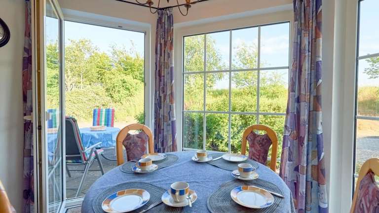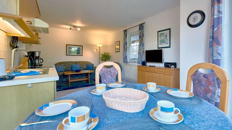 Das Reethaus Boddenblick - Apt. 14 ist eine Ferienwohnung, die eine Terrasse sowie einen Garten bietet. Zur Ausstattung gehört kostenloses WLAN. Es handelt sich um eine Nichtraucherunterkunft, die keine Junggesellenabschiede oder ähnliche Feiern erlaubt.