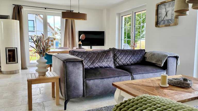 Das Reethaus Mellnitz liegt in dem kleinen Ort Mellnitz, nur 17 km vom Ruegendamm entfernt. Die Umgebung bietet Ihnen eine malerische Landschaft und eine ruhige Atmosphäre, ideal zum Entspannen und Abschalten. In der Nähe finden Sie auch den Hafen von Stralsund und das Alte Rathaus von Stralsund, die beide einen Besuch wert sind. Der Flughafen Heringsdorf ist ca. 134 km entfernt.