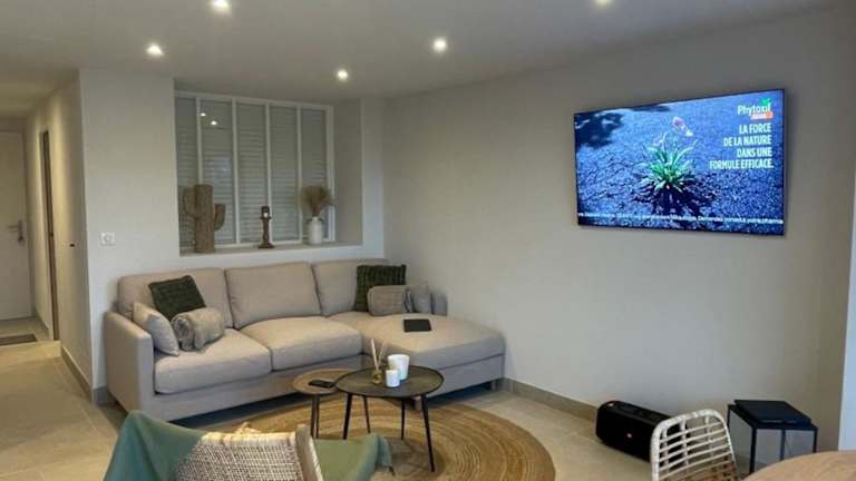 Refait à neuf Standing bord de plage et piscine Proche de St Trop ist eine modernisierte Unterkunft direkt am Strand mit einem saisonalen Außenpool, einem Garten und einer Terrasse. Die Einrichtung umfasst eine Bar, die Gästen eine angenehme Erfrischung bietet.