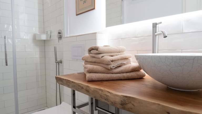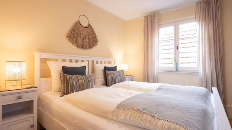 Die Ferienwohnung besteht aus einem Schlafzimmer und einem Wohnzimmer. Sie bietet eine voll ausgestattete Küchenzeile, die mit einem Kühlschrank und einer Kaffeemaschine ausgestattet ist. Zudem gibt es ein Badezimmer mit Dusche und Haartrockner. Handtücher und Bettwäsche werden zur Verfügung gestellt.