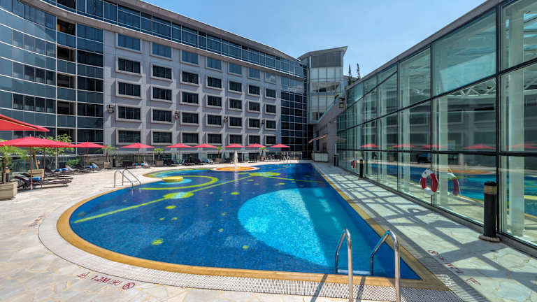 Das Regal Airport Hotel in Hongkong bietet Reisenden eine ideale Lage direkt am internationalen Flughafen. Mit geräumigen und modern ausgestatteten Zimmern, einem großen Außenpool, einem beheizten Innenpool und einer Vielzahl gastronomischer Einrichtungen ist das Hotel die perfekte Wahl für einen komfortablen Aufenthalt. Es bietet auch eine gute Anbindung an das Stadtzentrum und Sehenswürdigkeiten wie das Hong Kong Disneyland und die Hongkong-Zhuhai-Macau-Brücke.