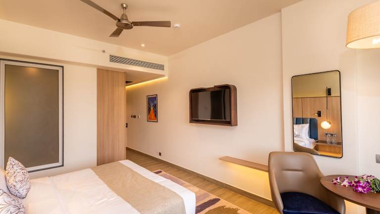Die klimatisierten Zimmer sind ausgestattet mit einem Schreibtisch, einem Wasserkocher, einer Minibar, einem Safe, einem Flachbild-TV und einem eigenen Badezimmer mit Dusche. Jedes Zimmer ist außerdem mit Bettwäsche und Handtüchern versehen.