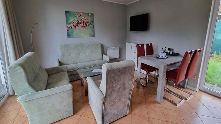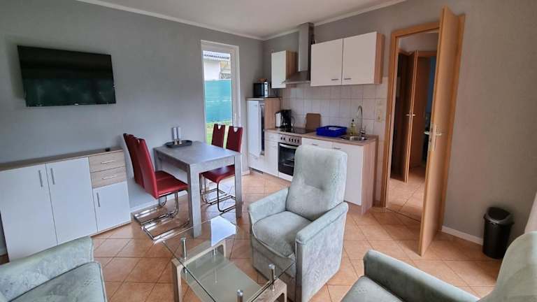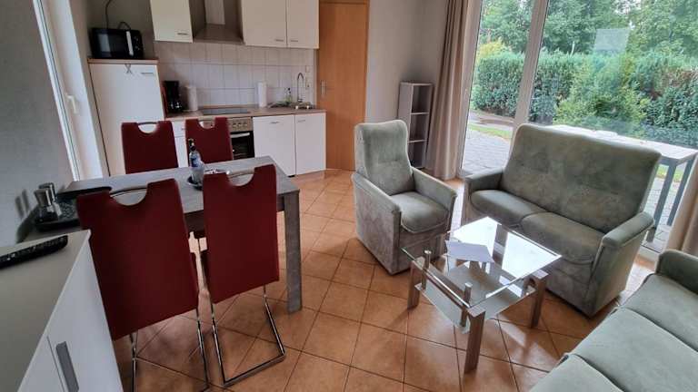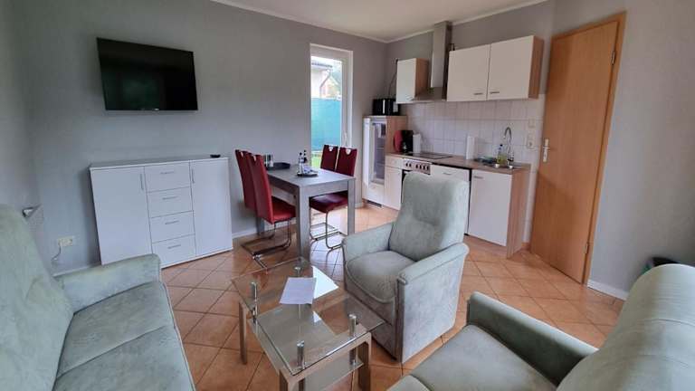 Das Reihenhaus am Groß Labenzer See bietet Übernachtungsmöglichkeiten in Form eines gut ausgestatteten Ferienhauses mit Terrasse und WLAN. Diese Unterkunft verfügt über zwei Schlafzimmer und eine Ausstattung für Selbstversorger, was für einen angenehmen Aufenthalt sorgt. Es sind keine Feiern, wie Junggesellenabschiede, erlaubt und die Mindestalterregelungen beachten.
