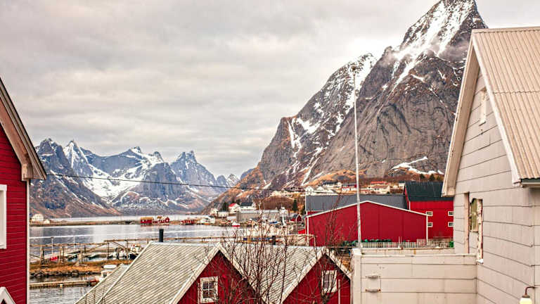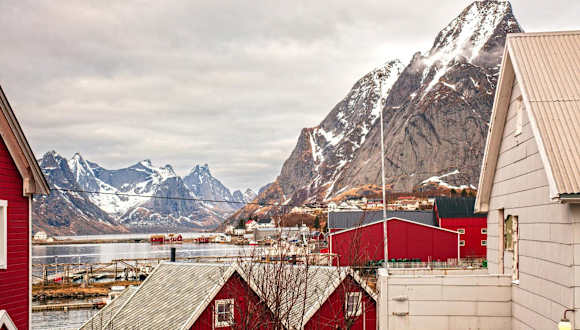Moskenes, in der Nähe des Hubschrauberlandeplatzes Værøy, 42 km entfernt.