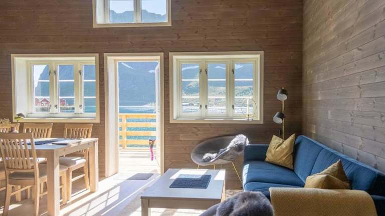 Das Reine Seaview Cabin befindet sich in Reine, einer malerischen Stadt in der Region Nordland. Von hier aus haben Sie eine fantastische Aussicht auf das Meer und die umliegenden Berge. Die Lage ist perfekt für Naturliebhaber, da Sie direkt vor der Haustür wandern können. Der Flughafen Leknes ist nur 54 km entfernt, so dass Sie bequem an- und abreisen können.