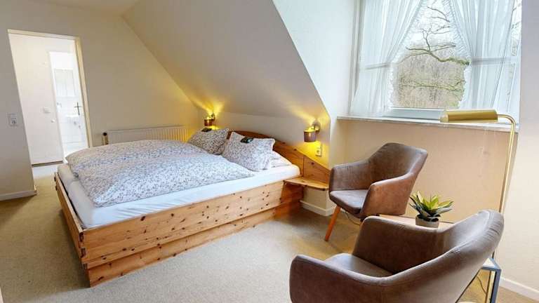 Jedes Zimmer in der Reiterpension Marlie ist mit einem Kleiderschrank ausgestattet und verfügt über ein eigenes Badezimmer sowie Bettwäsche. Die Zimmer bieten Ausblicke auf den Garten.