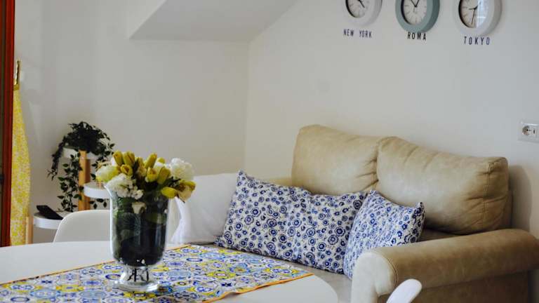 Die Ferienwohnung verfügt über eine Klimaanlage und besteht aus zwei Schlafzimmern, einem Wohnzimmer sowie einer voll ausgestatteten Küche, die mit einem Kühlschrank und einer Kaffeemaschine ausgestattet ist. Zudem gibt es ein Badezimmer mit einem Bidet und kostenlosen Pflegeprodukten. Handtücher und Bettwäsche sind in der Unterkunft ebenfalls vorhanden.