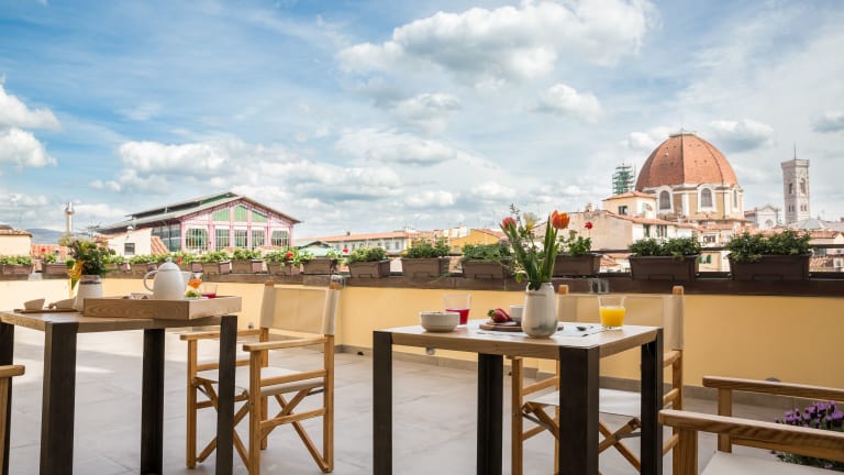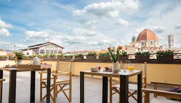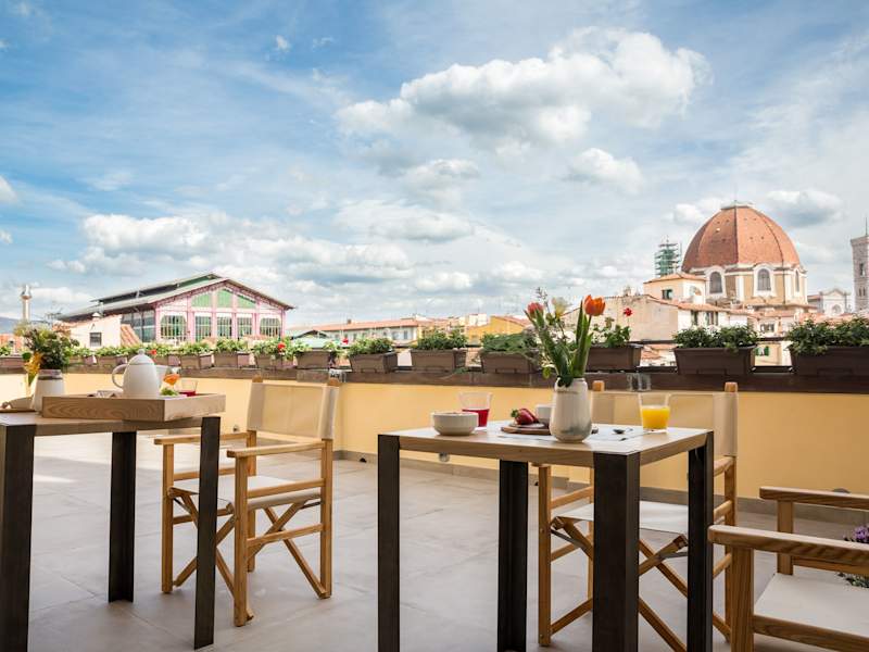 Das Relais Luce Florence ist ein charmantes Hotel in Florenz, das sich nur wenige Gehminuten von wichtigen Sehenswürdigkeiten entfernt befindet. Die individuell gestalteten Zimmer sind mit hochwertigen Möbeln ausgestattet und bieten modernen Komfort wie Flachbild-Kabel-TV und einen Laptop-Safe. Das kontinentale Frühstücksbuffet wird entweder im Frühstücksraum oder auf der Panoramaterrasse serviert, und die Gäste können auch die Gemeinschaftsküche nutzen. Die zentrale Lage des Hotels ermöglicht es den Gästen, bequem die Kathedrale von Florenz und die Piazza della Signoria zu erkunden.