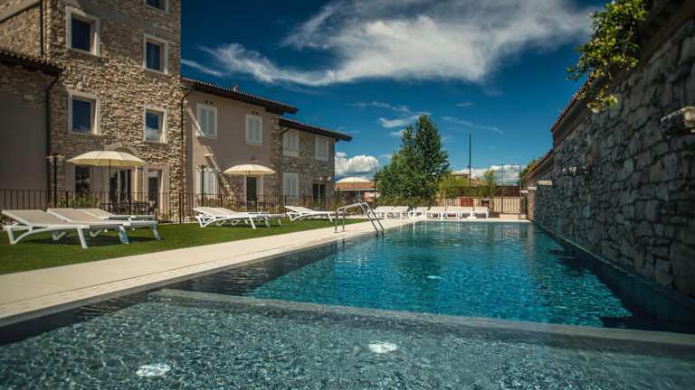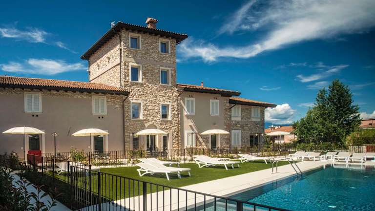 Das Relais Madergnago Gardapartments in Desenzano del Garda ist die perfekte Unterkunft für einen entspannten Urlaub am Gardasee. Mit seinen komfortablen Apartments, dem saisonalen Außenpool und der Nähe zum Strand bietet es alles, was Sie für einen erholsamen Aufenthalt benötigen. Genießen Sie den Blick auf den Pool und den See von Ihrer Terrasse aus und entspannen Sie im Whirlpool. Die Lage des Hotels ermöglicht es Ihnen, die Burg von Desenzano und die Terme Virgilio in Sirmione in kurzer Entfernung zu erkunden.