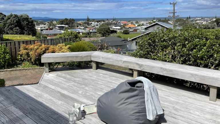 Das Ferienhaus Relax and rewind at Waihi Beach with Oberon Bach bietet Übernachtungsmöglichkeiten in einer ruhigen Umgebung und ist ausgestattet mit einem Balkon sowie kostenlosem WLAN.