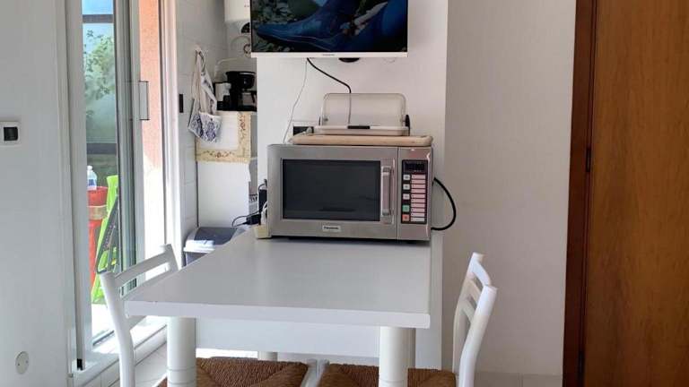 Die Ferienwohnung verfügt über einen Essbereich sowie eine Küche, die mit einer Mikrowelle ausgestattet ist. Es sind keine speziellen Informationen zu weiteren Verpflegungsmöglichkeiten vorhanden.