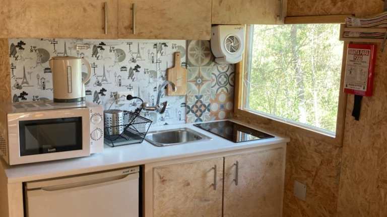 Das Relax Container besteht aus einem gemütlichen Schlafzimmer, einem Wohnzimmer und einer voll ausgestatteten Küchenzeile. Das klimatisierte Containerhaus bietet Komfort und Bequemlichkeit für einen angenehmen Aufenthalt. Handtücher und Bettwäsche werden gestellt, um Ihnen den Aufenthalt so angenehm wie möglich zu gestalten.