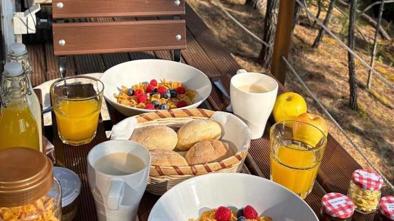 Das tägliche Frühstück im Relax Container umfasst eine Auswahl an kontinentalen, vegetarischen oder veganen Speisen. Genießen Sie ein leckeres und gesundes Frühstück, um gestärkt in den Tag zu starten.