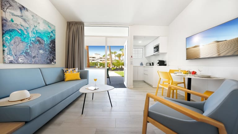 Verbringen Sie einen entspannten Familienurlaub im Hotel Relaxia Los Girasoles Bungalows in Playa del Inglés. Die ruhige Lage und die gepflegten Gärten sorgen für eine angenehme Atmosphäre. Jeder Bungalow verfügt über einen eigenen kleinen Vorgarten, in dem Sie die Sonne genießen können. Die gut ausgestattete Küche ermöglicht es Ihnen, Ihre eigenen Mahlzeiten zuzubereiten, während Sie in der Lounge entspannen. Der Komplex verfügt über einen Pool, in dem Sie sich erfrischen können, sowie eine Bar für einen entspannten Drink. Der nahegelegene Strand Playa del Inglés lädt zu Spaziergängen und einem erfrischenden Bad im Atlantik ein. Sie können auch das lebhafte Zentrum von Playa del Inglés erkunden und das pulsierende Nachtleben erleben.