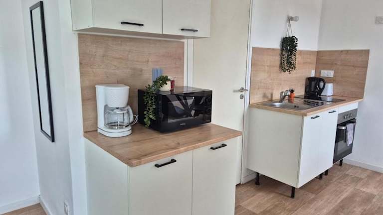 Die Ferienwohnung besteht aus einem separaten Schlafzimmer sowie einer vollständig ausgestatteten Küche. Die Unterkunft ist für eine private Nutzung geeignet und zeichnet sich durch ihren Zugang zu einer Terrasse aus.