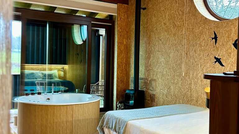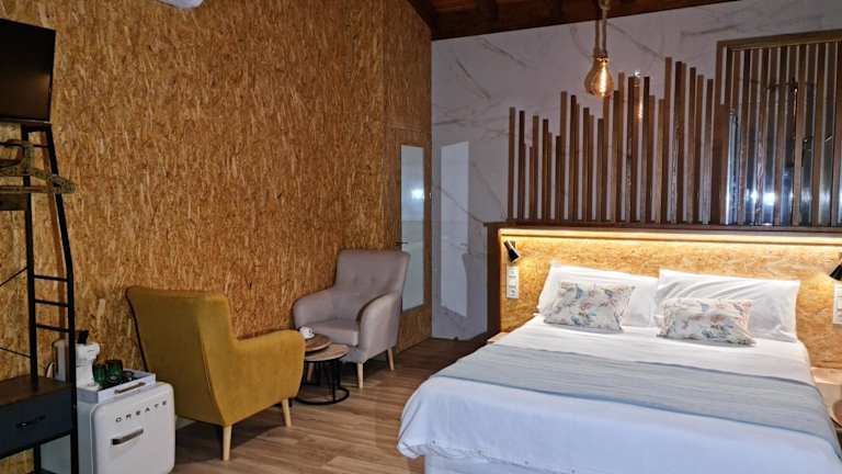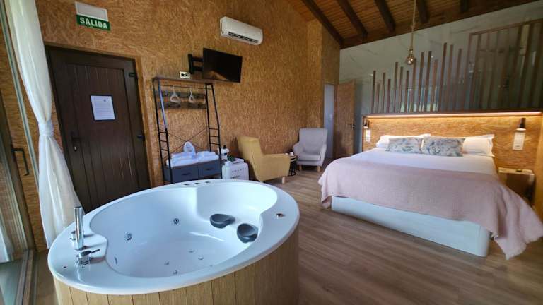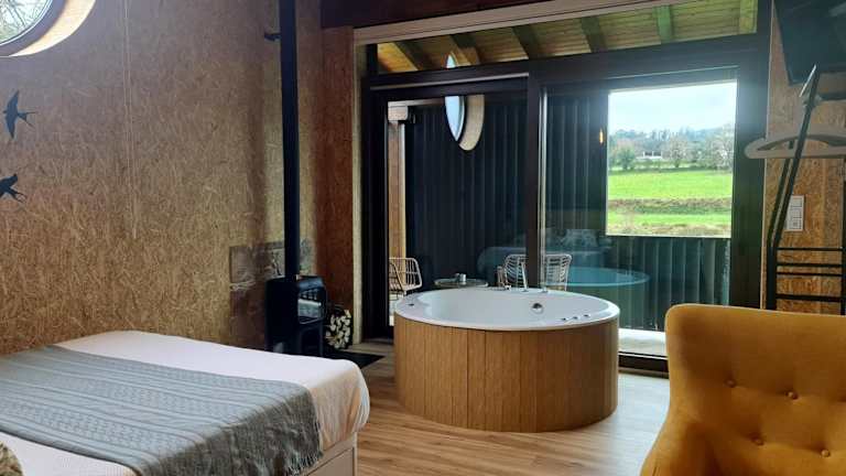 Das REMANSO DE TRASFONTAO Casa das Árbores & Bubble ist ein einladender Ferienhof, der Ihnen eine komfortable Unterkunft inmitten der Natur bietet. Mit einer Vielzahl von Annehmlichkeiten wie kostenlosen Fahrrädern, einem Garten und einer Gemeinschaftsküche können Sie Ihre Zeit hier in vollen Zügen genießen. Das tägliche Frühstück bietet eine Vielfalt an köstlichen Optionen, darunter kontinentale, vegetarische und vegane Speisen. Der Ferienhof verfügt auch über einen Grill und eine Gemeinschaftslounge, in der Sie sich entspannen können. Die Lage des Ferienhofs ermöglicht es Ihnen, die Kathedrale von Santiago de Compostela und andere Sehenswürdigkeiten in der Umgebung leicht zu erreichen.