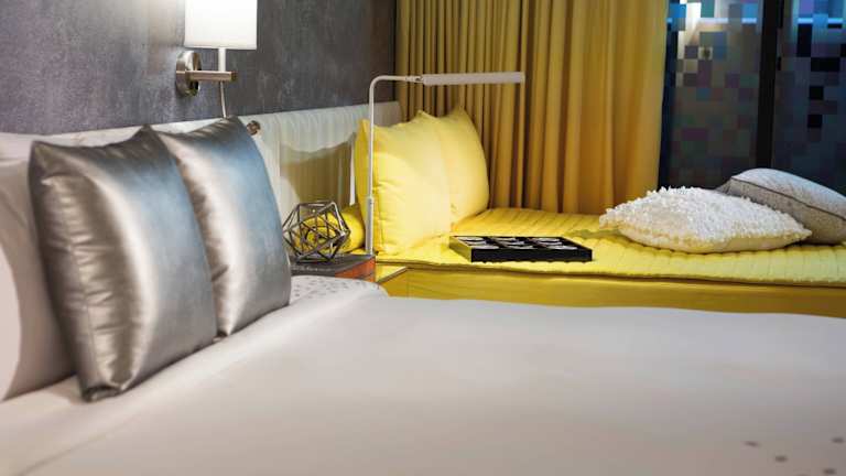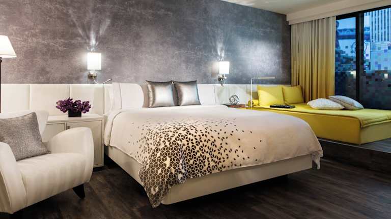 Das Renaissance New York Times Square Hotel verfügt über 312 schallisolierte Zimmer auf 26 Etagen. Jedes Zimmer ist stilvoll eingerichtet und bietet den Gästen einen komfortablen Rückzugsort inmitten des Trubels der Stadt. Die Zimmer sind mit den typischen Betten und Bettwäsche des Hotels Renaissance ausgestattet und verfügen über dunkle Holzmöbel und goldblaue Akzente. Von den raumhohen Fenstern aus genießen die Gäste einen atemberaubenden Blick auf die Stadt. Zur weiteren Ausstattung gehören ein Flachbild-TV, eine Minibar und kostenfreies WLAN.