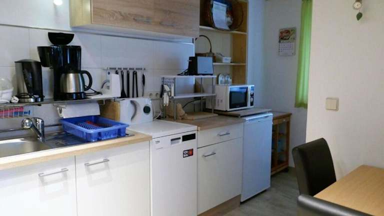 Die Ferienwohnung verfügt über eine voll ausgestattete Küche mit Kühlschrank und Ofen, es sind keine weiteren Verpflegungsmöglichkeiten angegeben.
