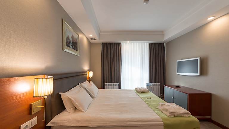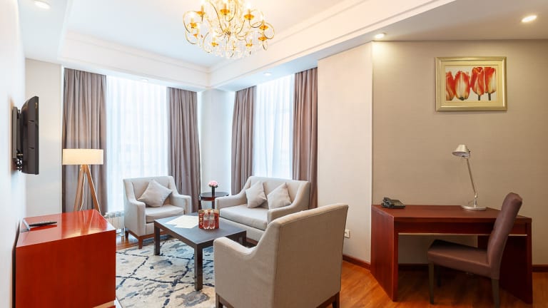 Das Renion Residence Hotel befindet sich in zentraler Lage in Almaty. Die Christi-Himmelfahrt-Kathedrale und der Park der 28 Panfilowzy sind nur wenige Gehminuten entfernt. Die U-Bahn-Station Zhibek Zholy erreichen Sie nach einem 15-minütigen Spaziergang und der Bahnhof Almaty ist nur 10 Fahrminuten vom Hotel entfernt. In der Umgebung finden Sie auch verschiedene Einkaufsmöglichkeiten, Restaurants und Unterhaltungsmöglichkeiten.
