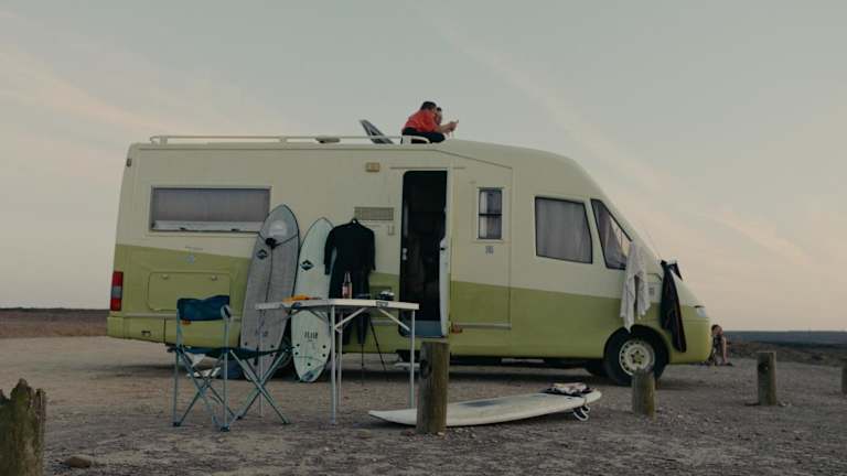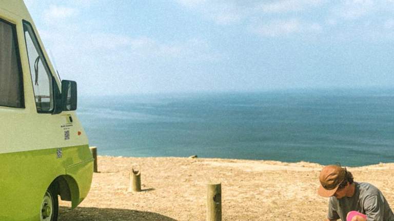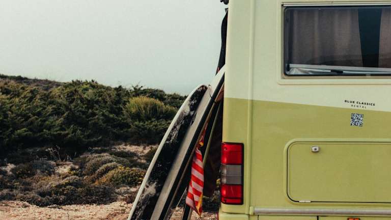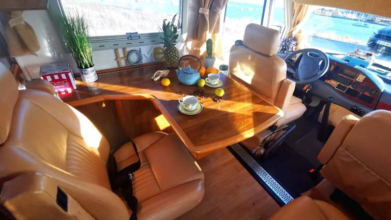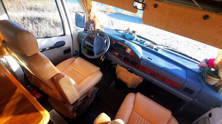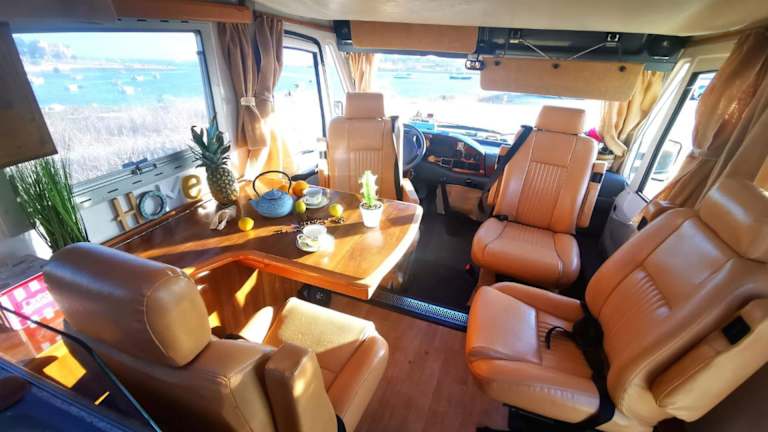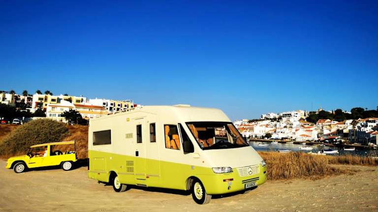 Rent a BlueClassics 's Campervan AUTOSTAR bietet eine Zelt-Lodge-Ausstattung mit Blick auf die Stadt und das Meer.