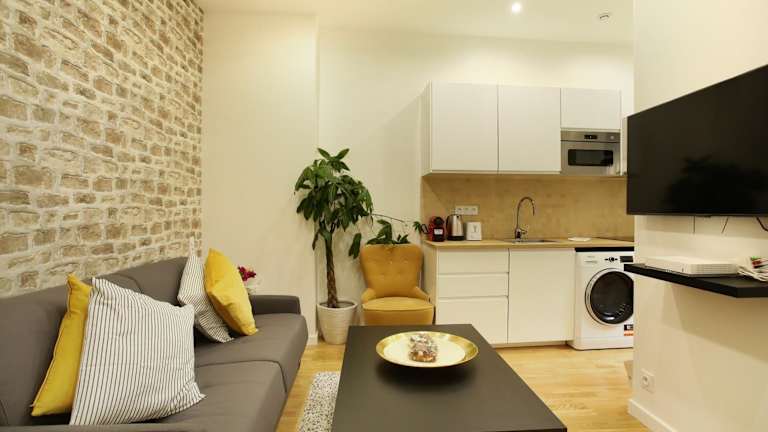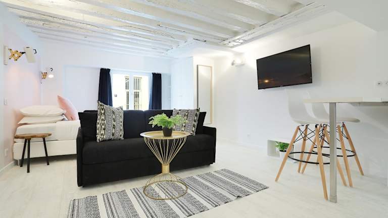 Rent a Room - Studio Bonne Nouvelle bietet Übernachtungsmöglichkeiten mit kostenlosem WLAN, Klimaanlage und einem Flachbild-TV. Die Wohneinheiten eröffnen einen Blick auf die Stadt und sind mit einer voll ausgestatteten Küche ausgestattet.