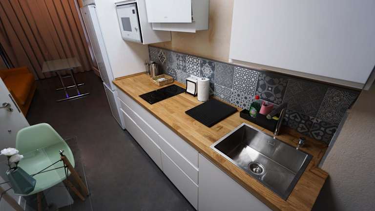 Die Ferienwohnung verfügt über 1 Schlafzimmer, ein Wohnzimmer und eine voll ausgestattete Küche, die mit einer Mikrowelle und einer Kaffeemaschine ausgestattet ist. Das Badezimmer enthält eine Dusche und einen Haartrockner. Handtücher und Bettwäsche werden bereitgestellt.