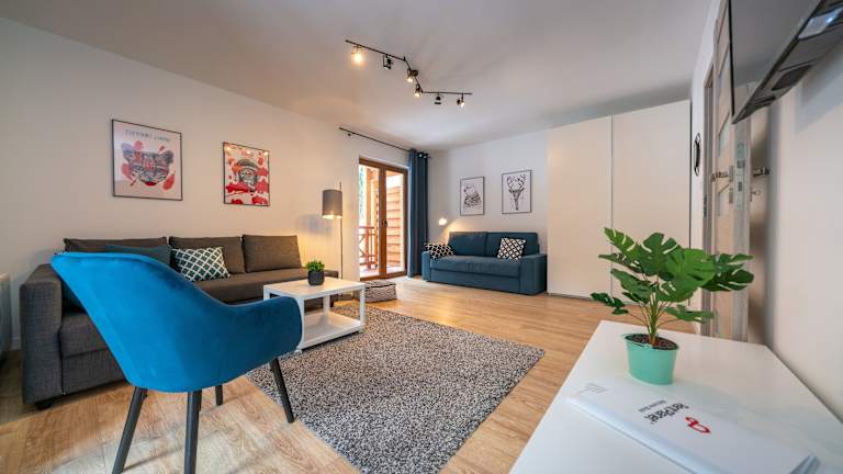 Die Apartments im RentPlanet - Apartamenty Szrenica bieten eine gemütliche und komfortable Unterkunft. Jedes Apartment verfügt über einen Balkon, auf dem Sie die frische Luft und die Aussicht genießen können. Der Innenbereich ist geschmackvoll eingerichtet und verfügt über einen Sitzbereich und einen Flachbild-TV. Die voll ausgestattete Küchenzeile bietet Ihnen die Möglichkeit, Ihre eigenen Mahlzeiten zuzubereiten. Das private Badezimmer ist mit einer Dusche und kostenlosen Pflegeprodukten ausgestattet.