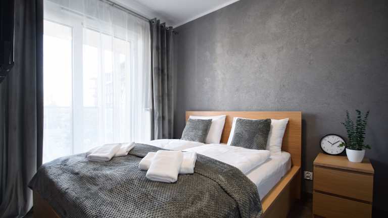 Die Ferienwohnung ist mit einem Schlafzimmer, einer Küche mit Kühlschrank und Geschirrspüler, einem Flachbild-TV sowie einem Sitzbereich ausgestattet. Ein Badezimmer mit Dusche ist ebenfalls vorhanden. Handtücher und Bettwäsche werden bereitgestellt.