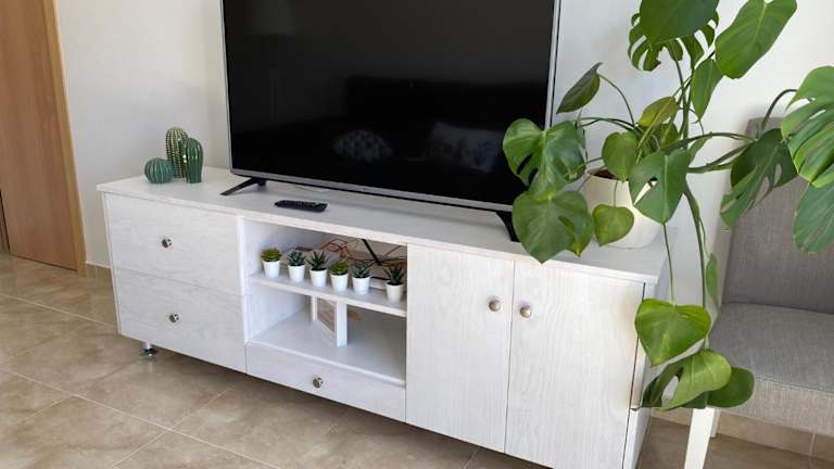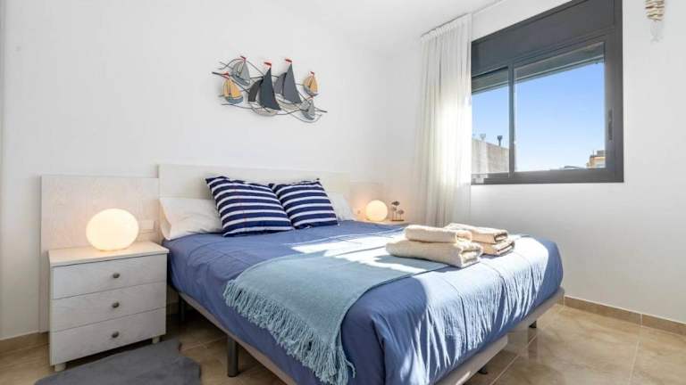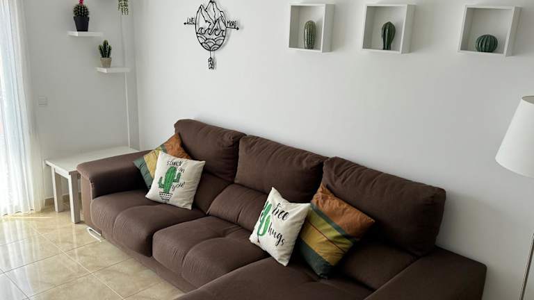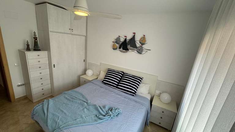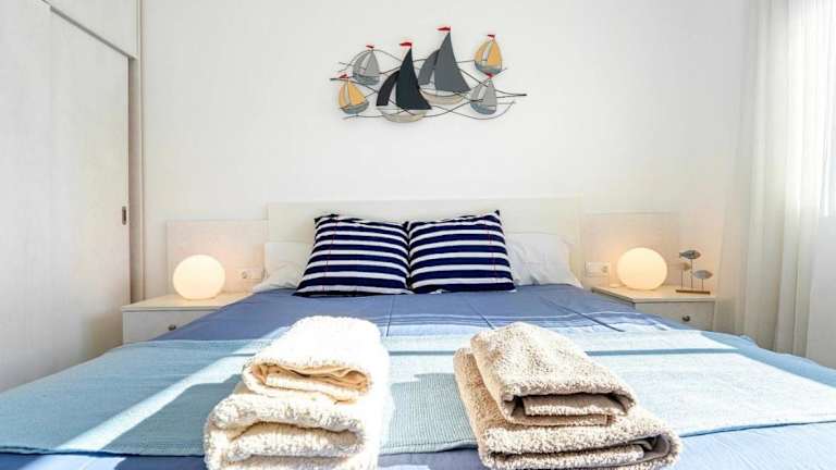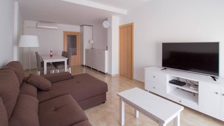 Die Ferienwohnung bietet eine Klimaanlage und besteht aus zwei Schlafzimmern, einem Wohnzimmer sowie einer voll ausgestatteten Küche mit Kühlschrank und Kaffeemaschine. Zwei Badezimmer mit Dusche und Haartrockner sorgen für zusätzlichen Komfort. Handtücher und Bettwäsche werden ebenfalls zur Verfügung gestellt.