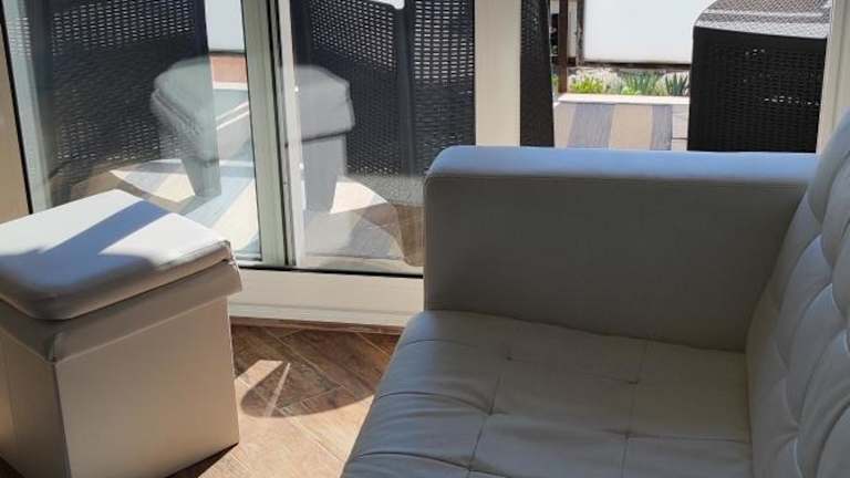Die Ferienwohnung besteht aus einem Schlafzimmer und einem Wohnzimmer. Eine voll ausgestattete Küchenzeile steht zur Verfügung, die mit einem Kühlschrank und einer Kaffeemaschine ausgestattet ist. Das Badezimmer verfügt über ein Bidet und eine Dusche. Auf Anfrage können Handtücher und Bettwäsche bereitgestellt werden.